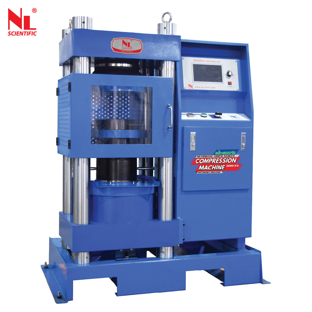 Automatic Compression Machine is used to determine the compressive strength of concrete by gradually and uniformly applying specific compressive to a concrete sample with the ability to control the force load and record data automatically through a touch screen display, streamlining the testing process.