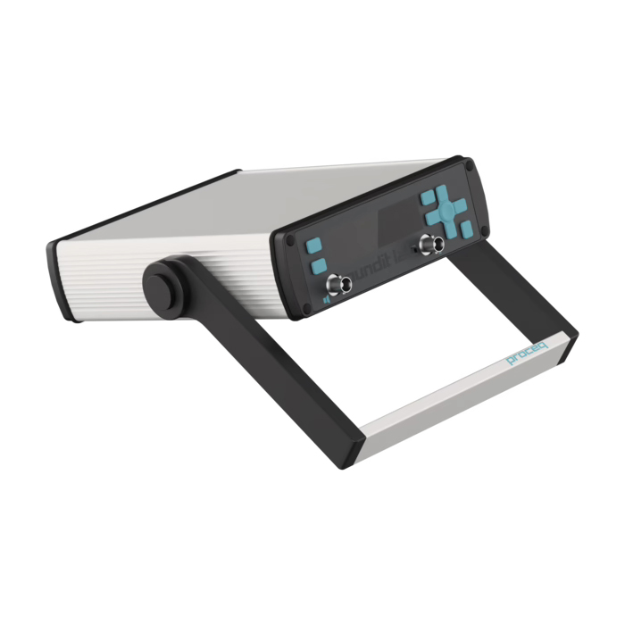 Available Proceq transducers: 54 kHz, 150 kHz, 250 kHz, 54 kHz Exponential, 500 kHz and 250 kHz Shear Wave Connect third party transducers up to 24 kHz, 54 kHz, 150 kHz, 250 kHz, 54 kHz Exponential, 500 kHz and 40 kHz shear wave dry point contact
