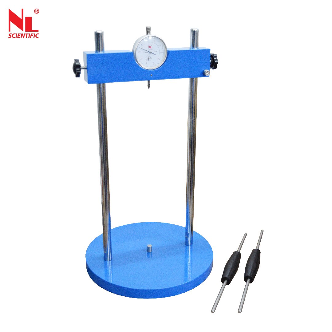 Used to measure the length variation of cement specimens, the unit comprises a steel frame with an adjustable height beam, analogue dial gauge range 5 x 0.001 mm. Supplied “WITHOUT” reference rod and accessories which have to be ordered separately.