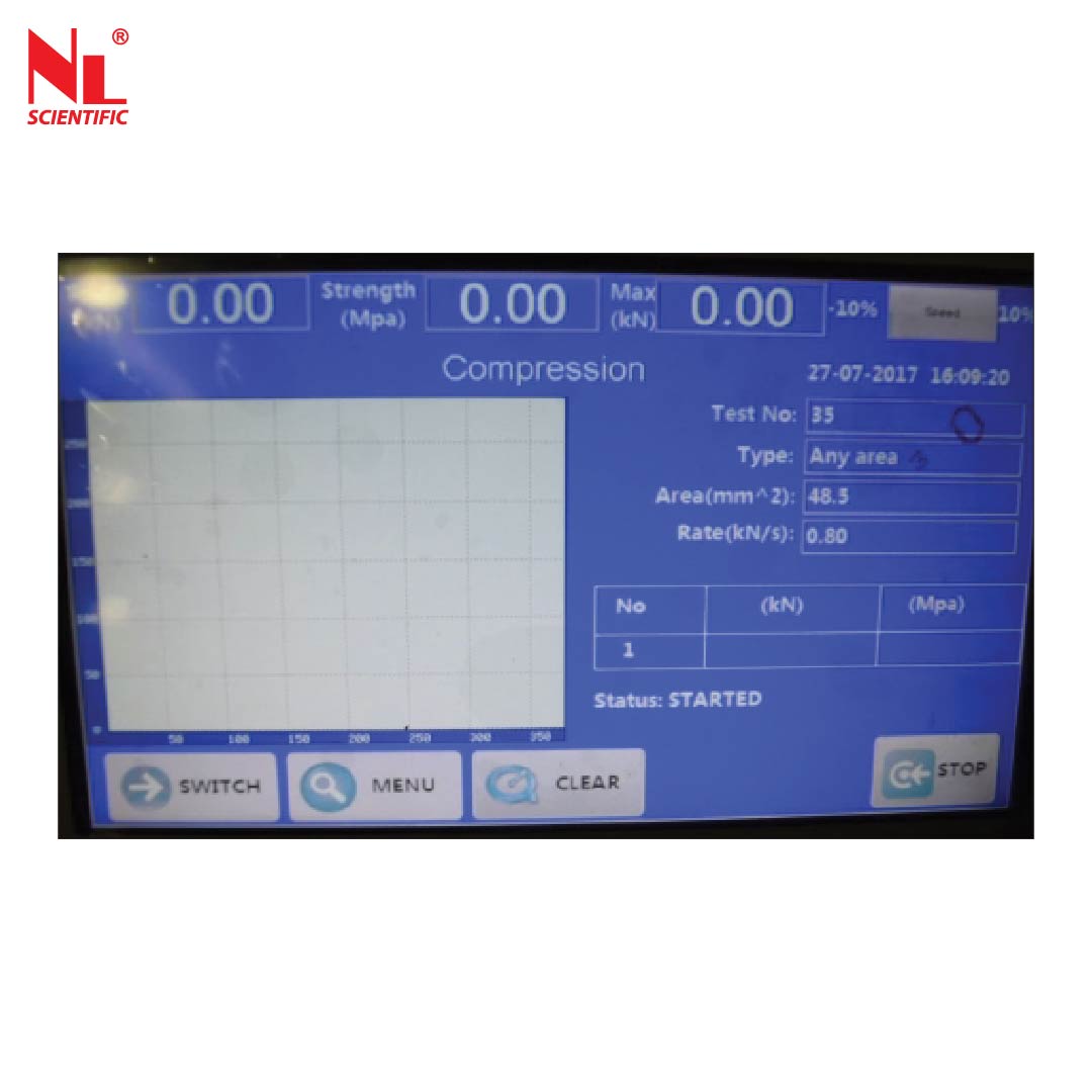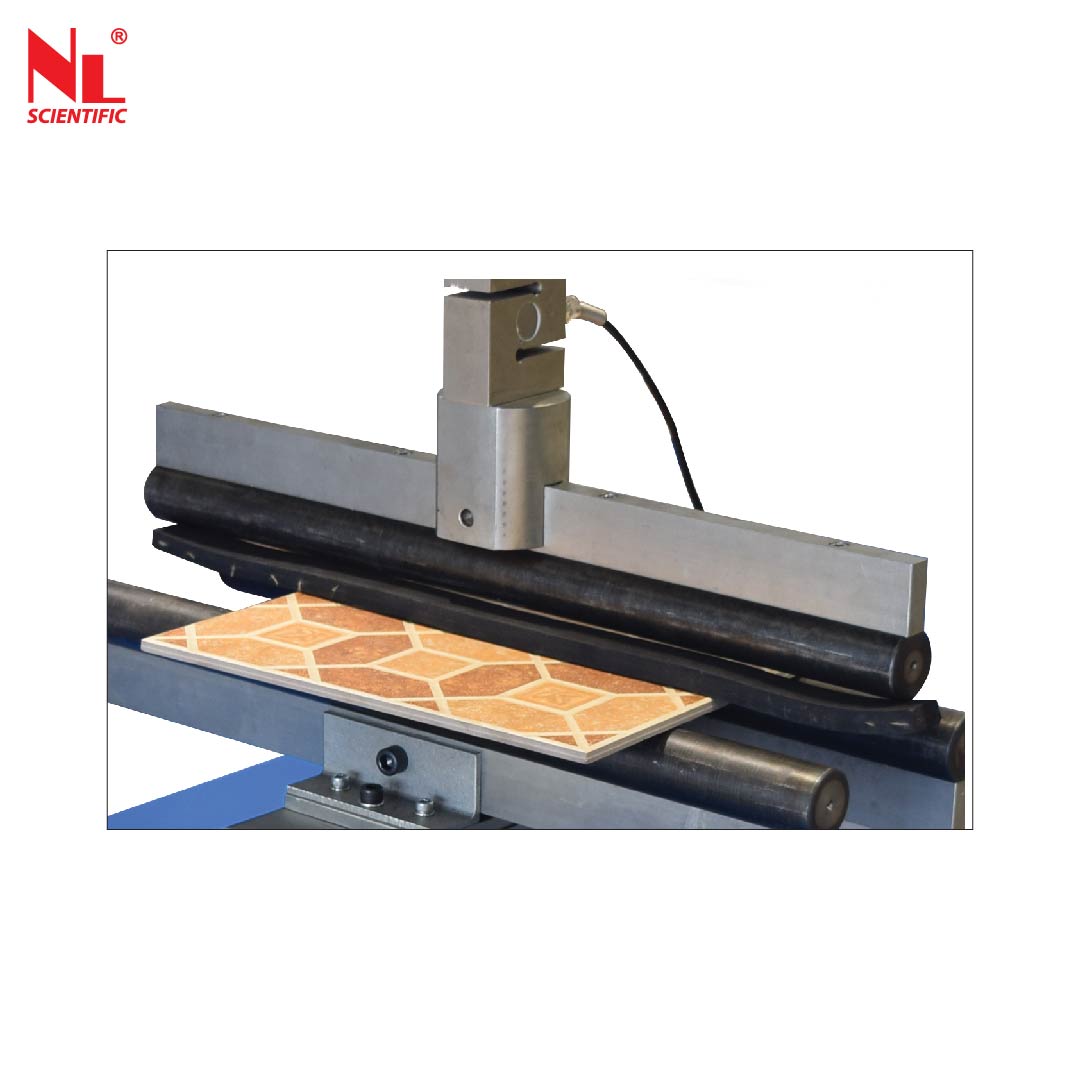 The machine is equipped with a DC motor. Flexural, breaking and compression strength tests can be perform under load or displacement control by using suitable accessories up to the machine capacity. Supplied with 50 kN capacity load cell. Consist with two layer rounded metal bearers in a horizontal plane whose centers are spaced of the hanging length of the specimen to be tested, and a single rounded metal upper bearer positioned centrally between the two lower bearers. The testing machine consist of base containing the transmission components and holds two robust columns connected by upper cross head and digital graphics data acquisition and control system. The upper cross head can be adjusted to set the vertical test space for different tests.
